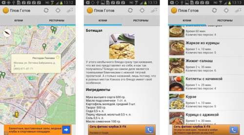 Recipes for every day (Android) The application collection contains more than 3 thousand recipes. Each of them contains a detailed description of the dish, calorie content, amount of proteins, fats and carbohydrates. In the application, you can create a menu for the day and add your own recipes. ...